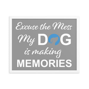 Excuse the Mess My Dog is Making Memories Framed Print - Grey