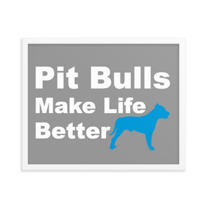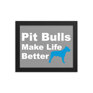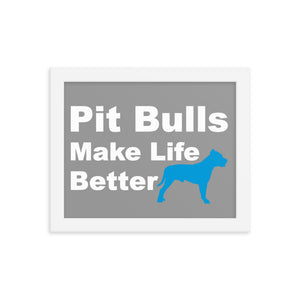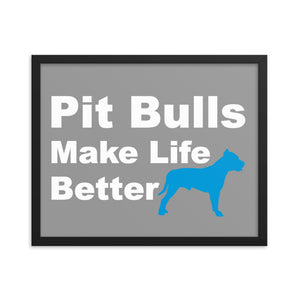 Pit Bulls Make Life Better Framed Print - Grey