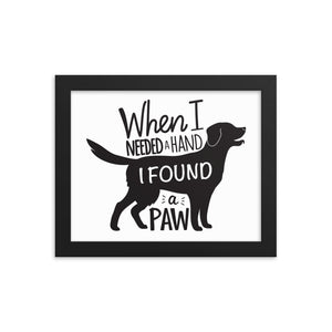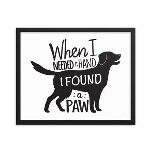 When I Needed a Hand I Found a Paw Framed Print